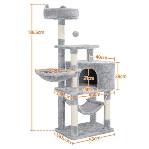 138cm Tall Cat Tree Kittten Climbing Tower with Scratching Posts/ Cozy Hammock
